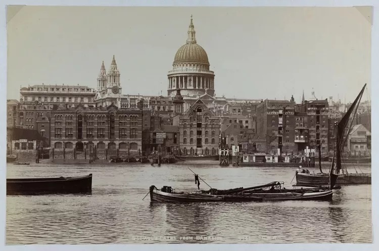 Bankside'dan Paul’s Wharf ve St Paul’s Pier'e, arka planda St Paul’s Katedrali ile birlikte, River Thames üzerinden bir manzara.Janette Rosing Koleksiyonu