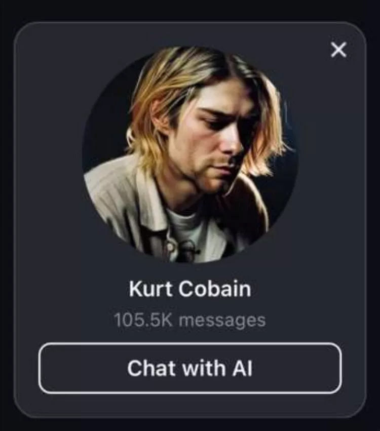 Yine de, AI destekli Kurt Cobain chatbot gibi hesaplar büyük popülerlik kazanmaya devam ediyor; Cobain’in botu şimdiye kadar 105,5 binden fazla etkileşim aldı.